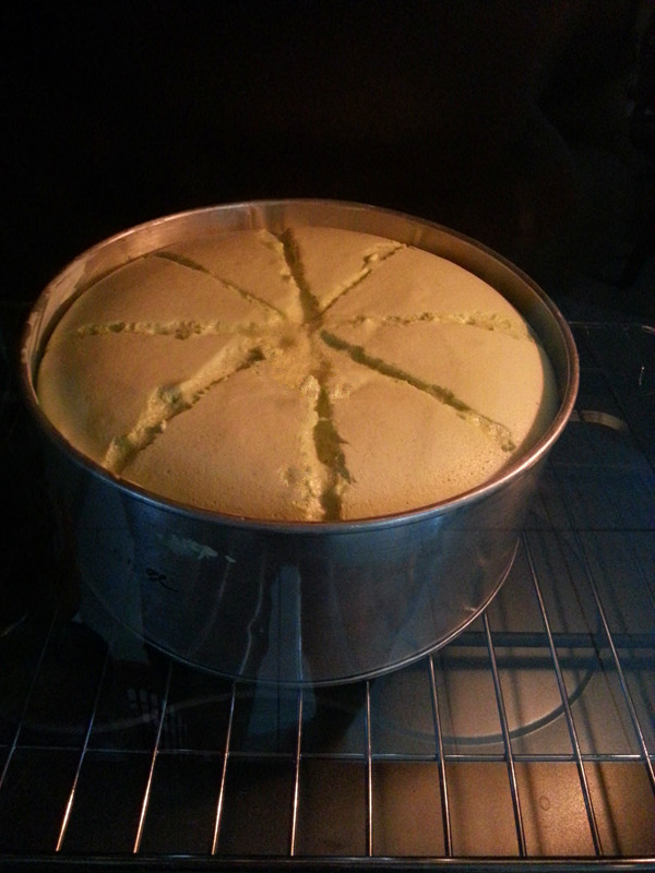 7.)烤好后,立刻离模,放在铁架上待冷,撕去纸。