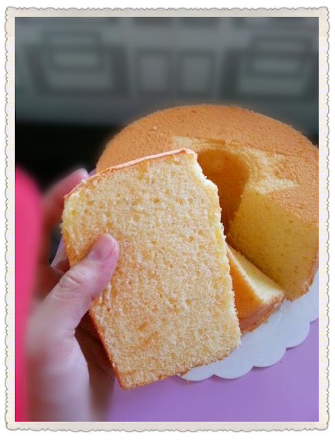 6.)取出,倒扣,待冷,脱膜,横切成2片。